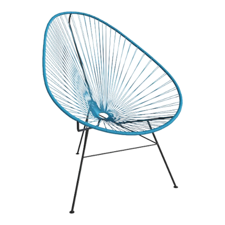 Sedia lounge Acapulco petrolio con struttura nera, ideale anche per un uso in esterno